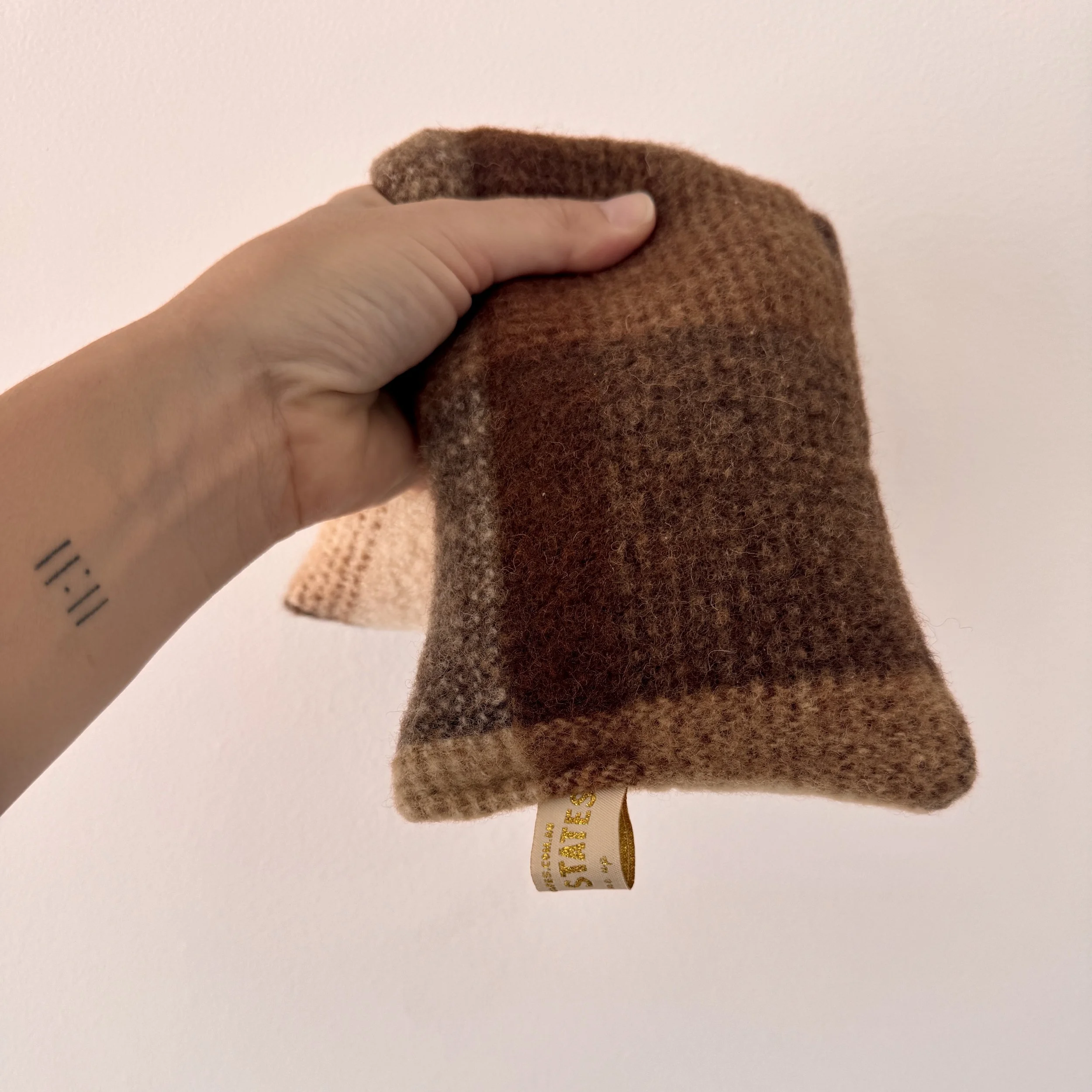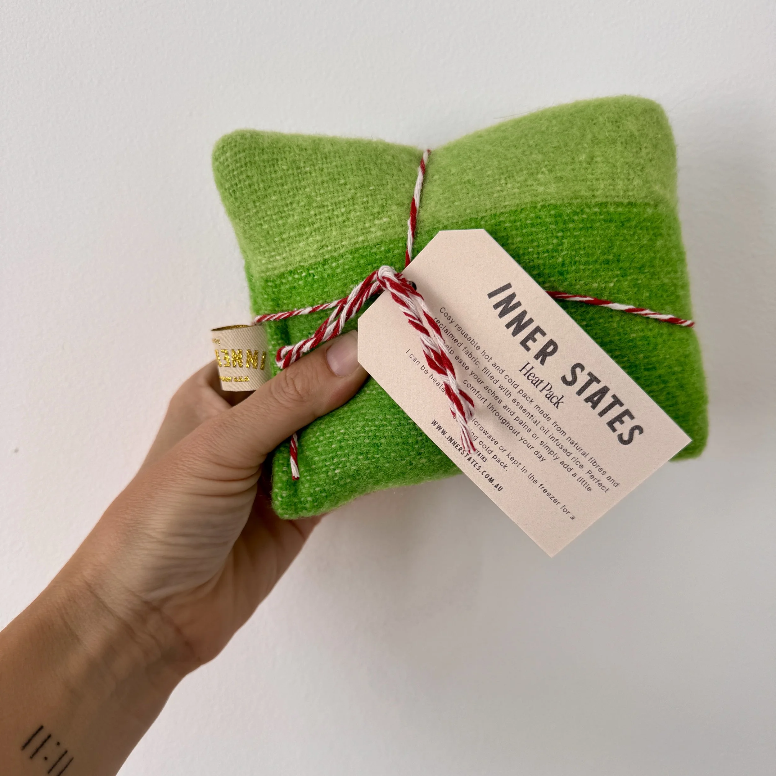 Crafted from reclaimed vintage woollen blankets and filled with rice and Inner States essential oils, these heat packs are the ultimate cozy companion.